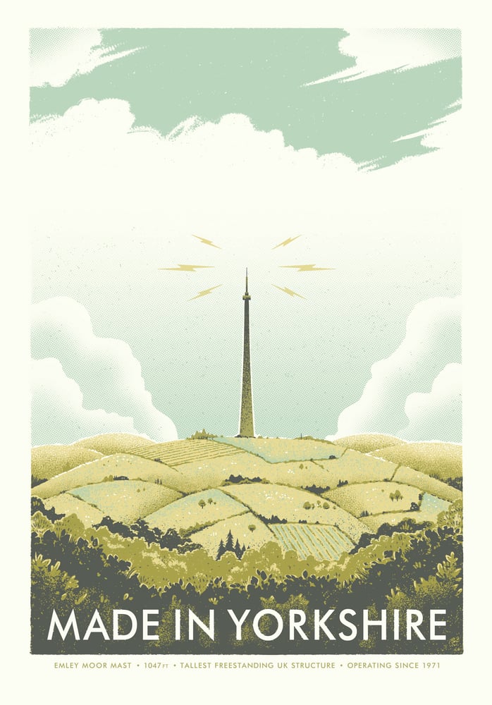 The original version of this poster was commissioned for a project connected to the history of Yorkshire Television but for this new edition I've reworked the image slightly and changed the text at the bottom. The older editions of this print were all A2 sized however this version is a little smaller and easier to frame.