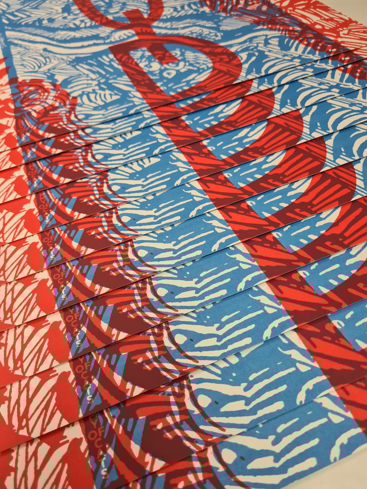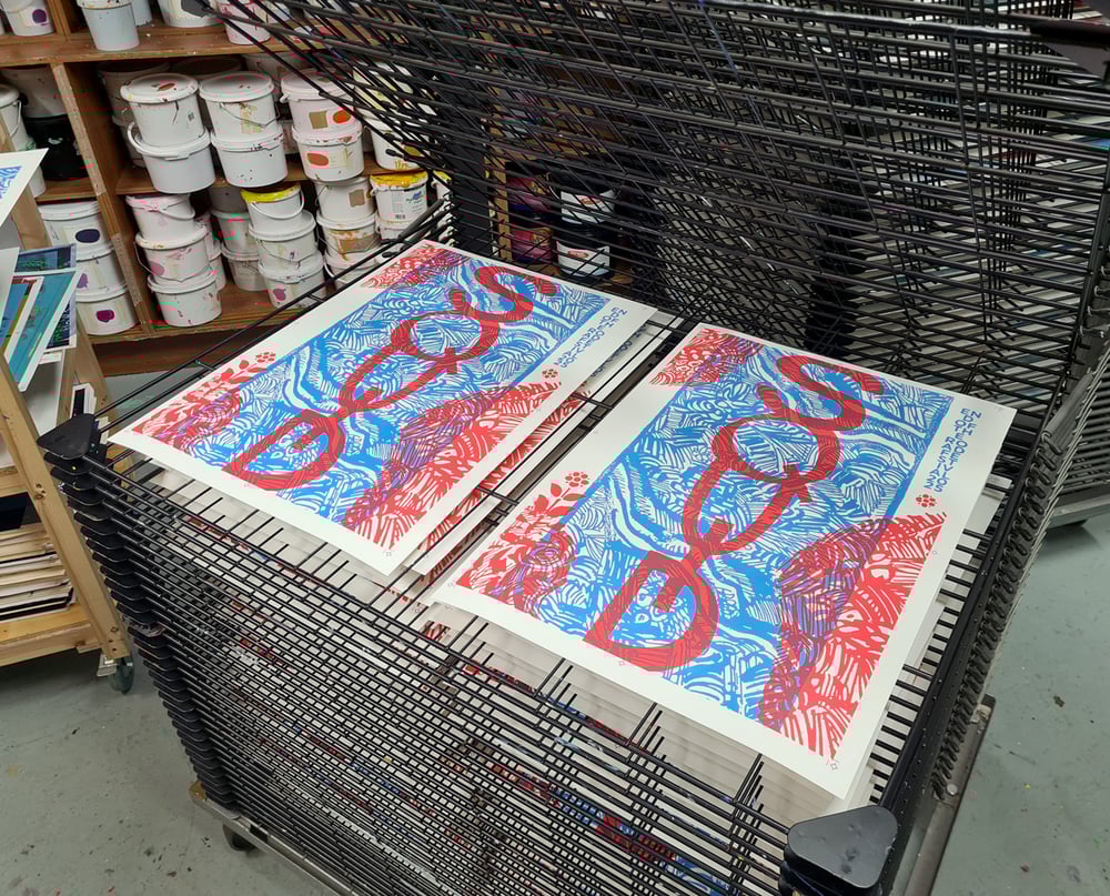 I printed these myself, 2 colours but that red is just the right amount of semi-transparent. A2 sized, the edition is of 50, Signed and numbered at the bottom.